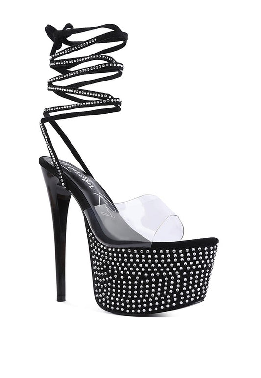Centre of attraction guaranteed in these stunning and racy platform heels. The strappy detail is...