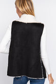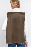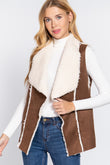 SHAWL COLLAR RAW EDGE DETAIL FAUX SUEDE FUR BONDED VEST