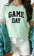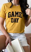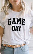 Game Day (Black Ink) Varsity Sport Lettering Plus Size Graphic Tee.