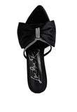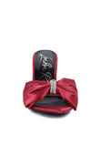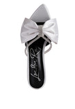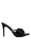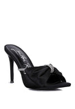 Cutely feminine - this pair of high heel satin sandals come with big bow detail on top which is further accentuated with rhinestone diamante ornament. The delicate-looking pointed dress sandals are perfect for evenings and casual outings. It has mild cushioning which cuts strain.