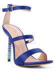 LAWSUIT RHINESTONE BALL HEEL SATIN SANDALS