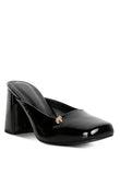 NEOPLAST Patent PU Block Heeled Mules