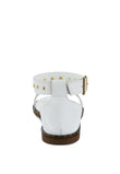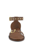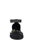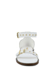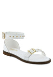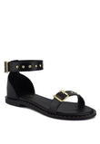 The stud embellishments look luxurious and the elegant over-the-ankle straps with pin buckle detail look absolutely chic! The tiny studs along the insole frame and the buckled front strap also have a casual yet sophisticated allure. These leather sandals would make great casual wear for summertime.