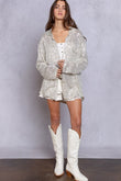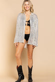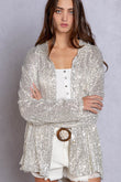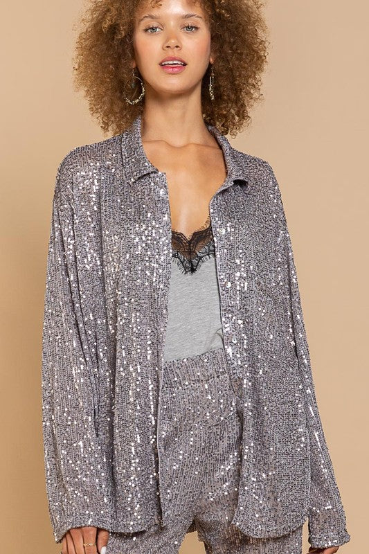 Unleash your edgy side with this stunning sequin-adorned shirt, designed in a relaxed fit with long sleeves and a clean hem finish. This loose-fitting shirt is perfect for making a bold fashion statement, offering a versatile and eye-catching addition to your wardrobe that's sure to turn heads wherever you go!