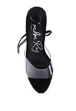 Centre of attraction guaranteed in these stunning and racy platform heels. The strappy detail is sexy, while the diamante adorning the strap and the wedge is alluring. The strap is clear and hence the focus is completely on the heels.