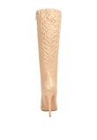High Block heeled boot with basket weave patterned quilting is a beautiful and bright addition to your boot collection. It comes with an inside zipper opening which makes it easy to wear. The thin block heel and pointed toe make it sharp and trendy.